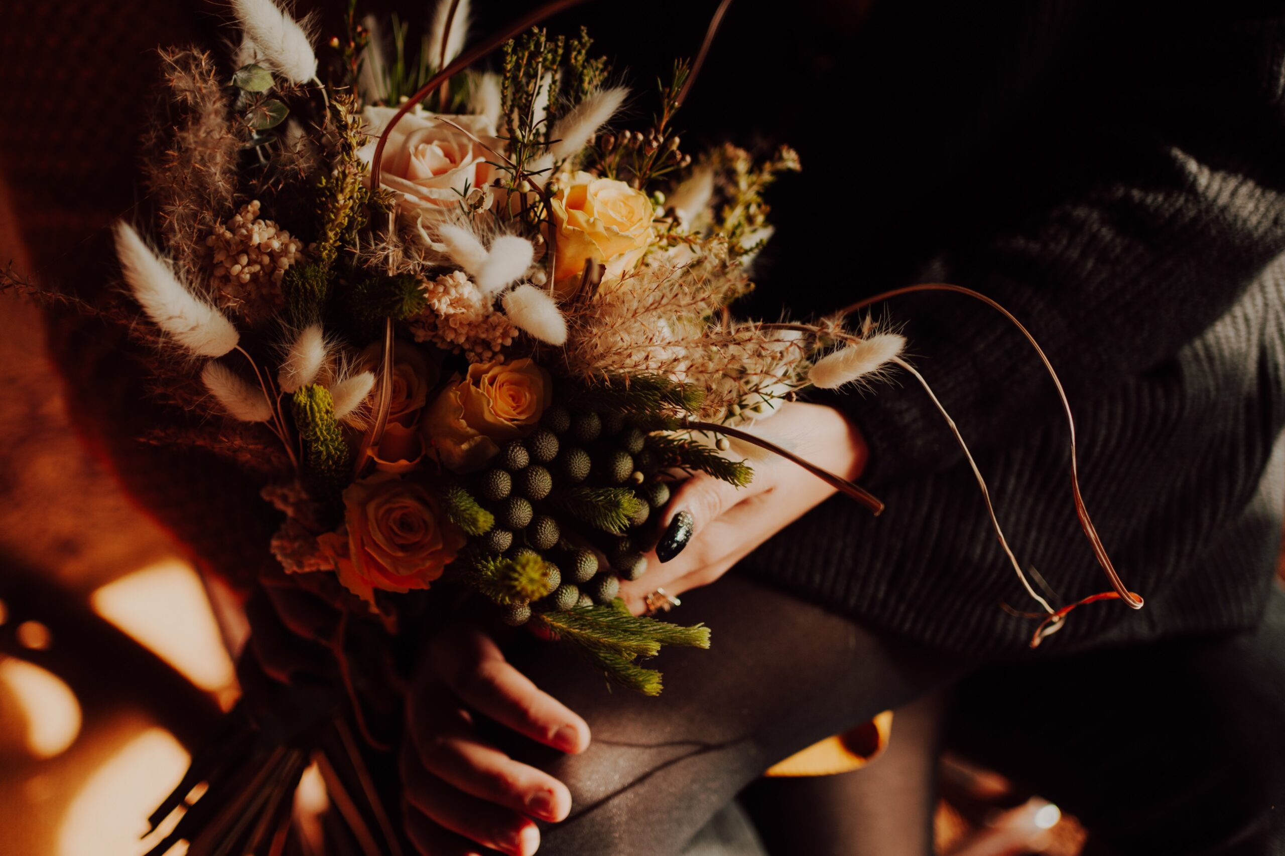 - akcesoria dodatkowe: bukiet, mucha, spinki, wianek, kocyk do otulenia zimą, pleciony wełniany sweter.