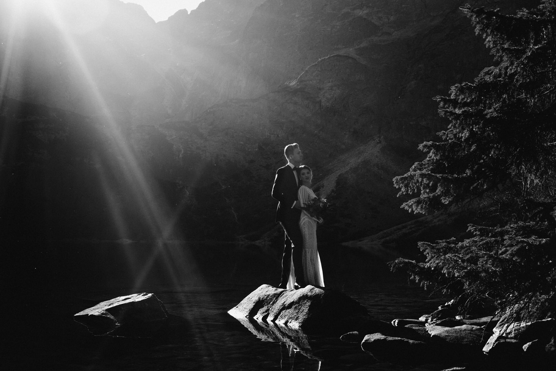 Fantastyczne okoliczności na sesję ślubną w Tatrach gwarantuje również Hala Gąsienicowa i znajdujący się już niemal rzut beretem Czarny Staw Gąsienicowy. Ta okolica serwuje magiczne widoki o każdej porze roku, a szczyty odbijające się w czarnej tafli jeziora mają wręcz hipnotyzujące działanie.