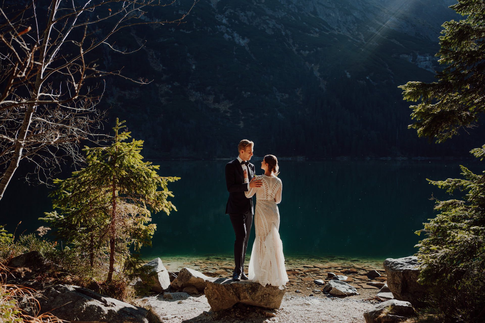 Wykonując sesję ślubną nad Morskim Okiem najlepiej jest okrążyć jezioro.
