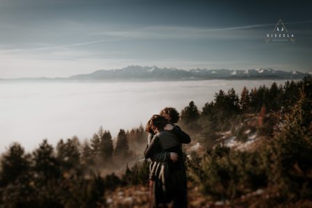 Tego dnia panowały idealne warunki atmosferyczne, aby stworzyć niesamowitą sesję fotograficzną. Można by rzec, że Anita i Adam z tego powodu wygrali los na loterii- ja przy okazji również wiedziałem, że w tym dniu zrobię wyjątkowe zdjęcia. W swoim życiu rzadko trafiałem na takie niezwykłe morze mgieł. Tego dnia niskie chmury utrzymywały się od wschodu do zachodu słońca. Wracając do naszych narzeczonych -oczywiście Anita powiedziała TAK. Sam byłem bardzo wzruszony: cudowne miejsce i przepiękne wyznanie miłości wśród wspaniałej aury. Czyż można sobie wyobrazić lepsze okoliczności zaręczyn ? Niewiele mogłoby przebić ten poranek. A do tego jeszcze wszystko uwiecznione na fotografiach w formie sesji narzeczeńskiej, miłosnej , oświadczynowej- czy jak kto woli. Nie będę zanudzał was już opisami- podziwiajcie zdjęcia.
