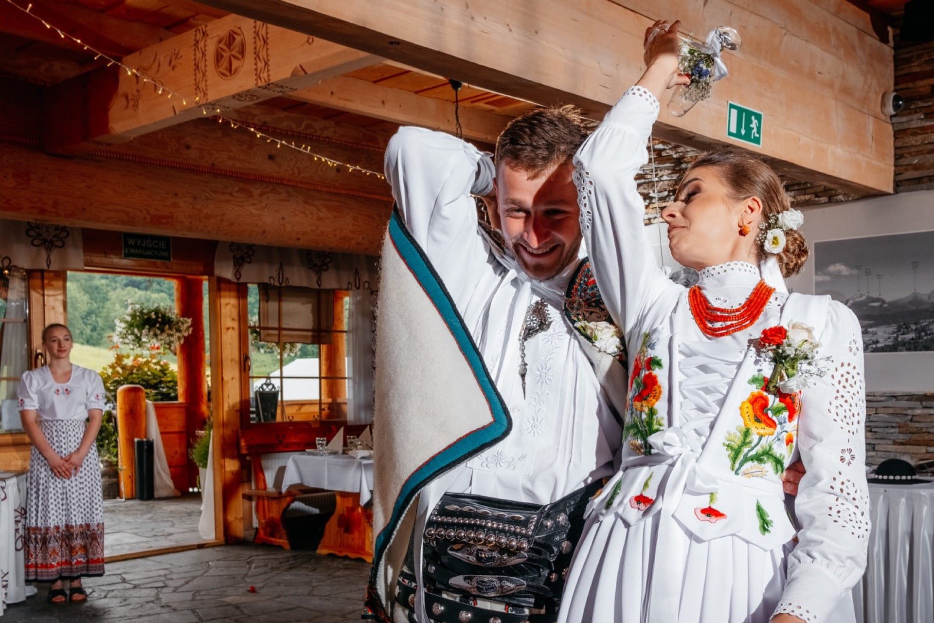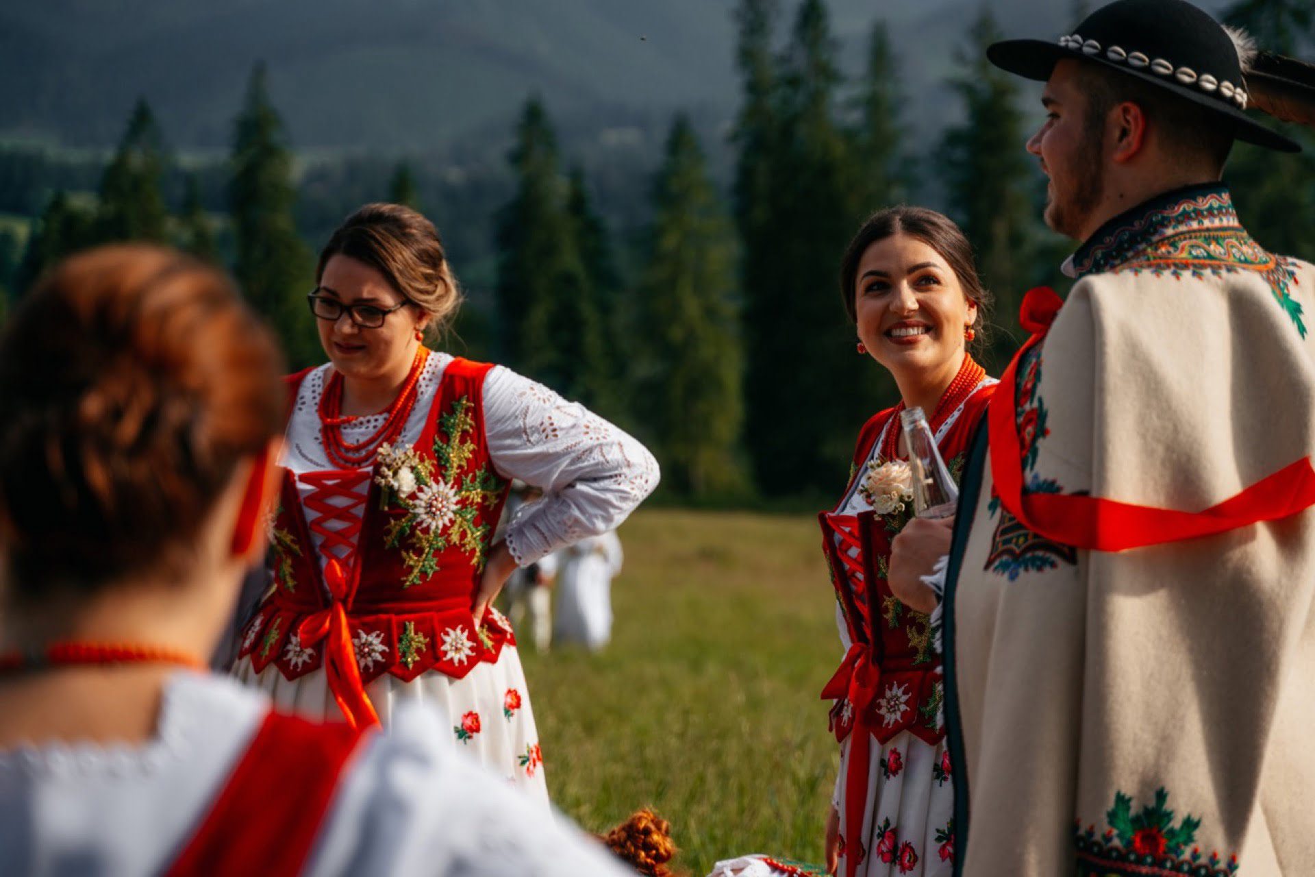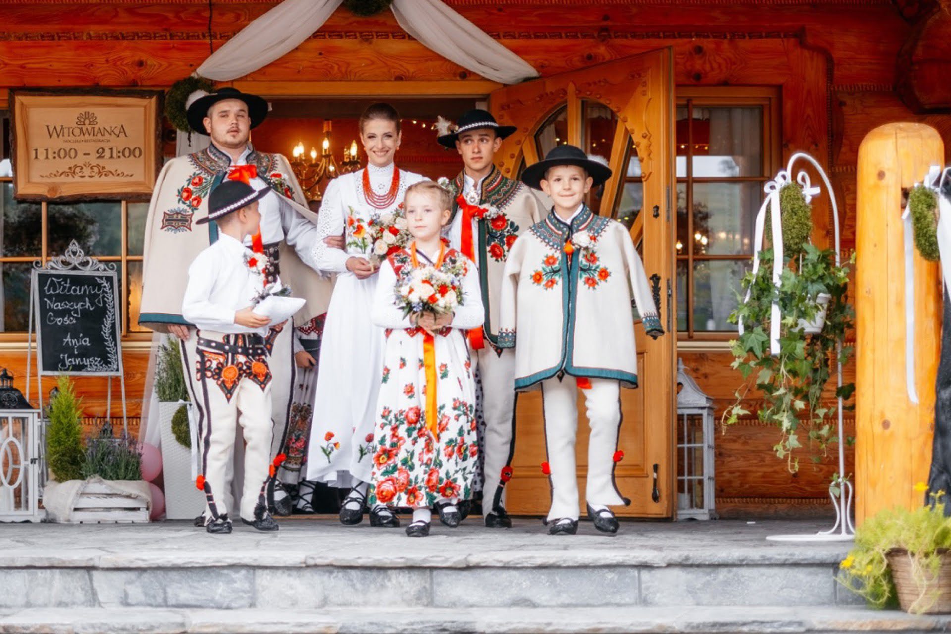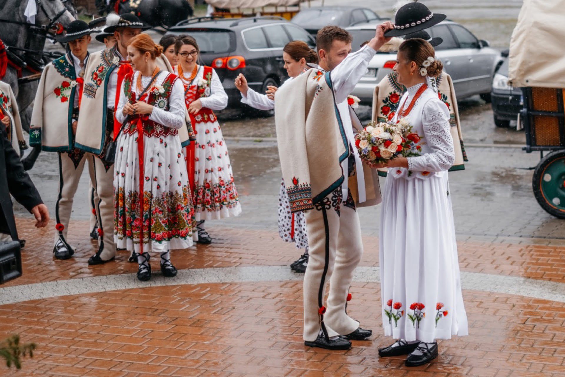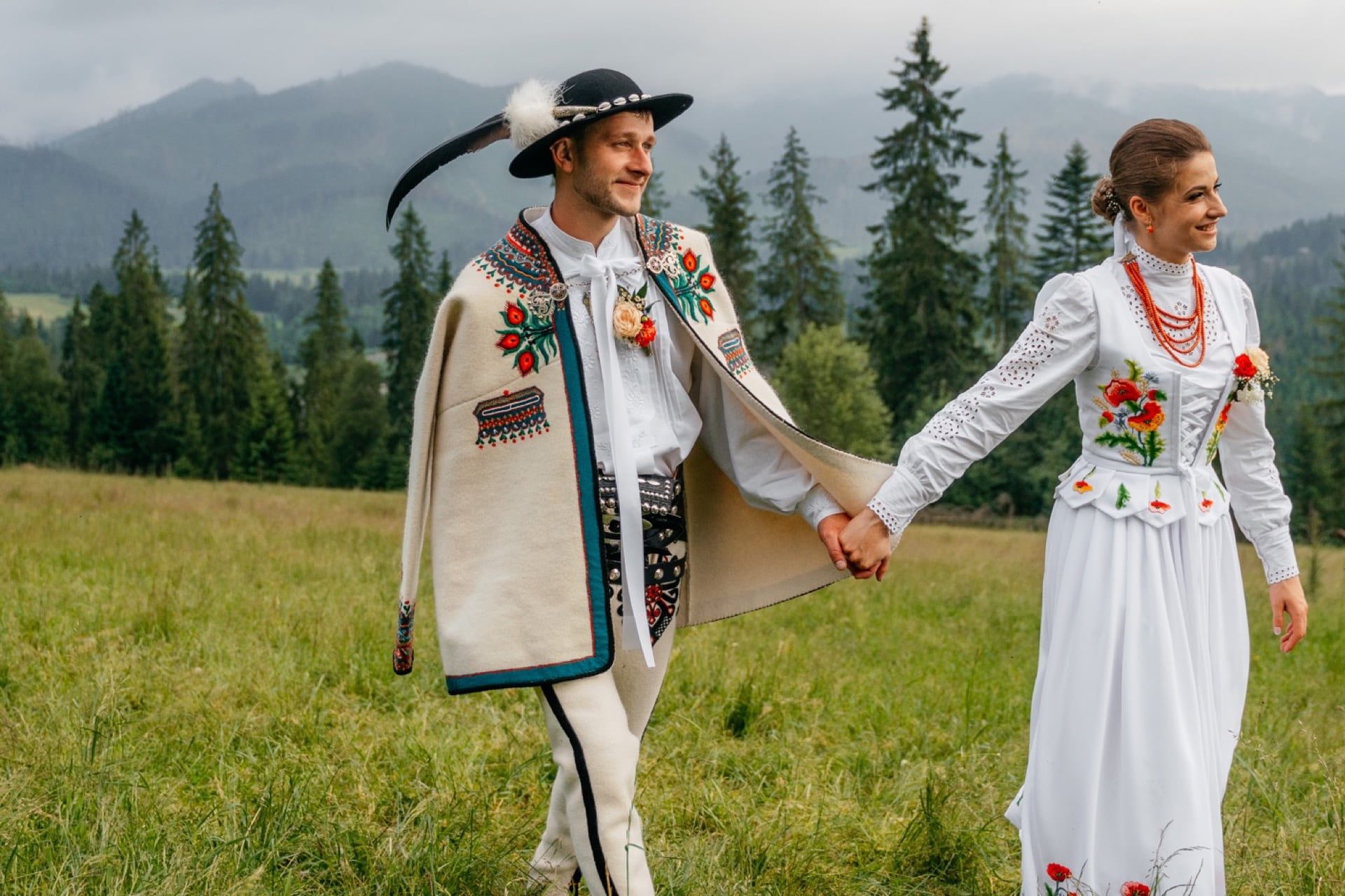 Stroje góralskie to kolejny ważny element tradycji. Panna młoda ubrana jest w białą suknię z haftami, a pan młody w cuchę i portki. Jak pisze **National Geographic**: