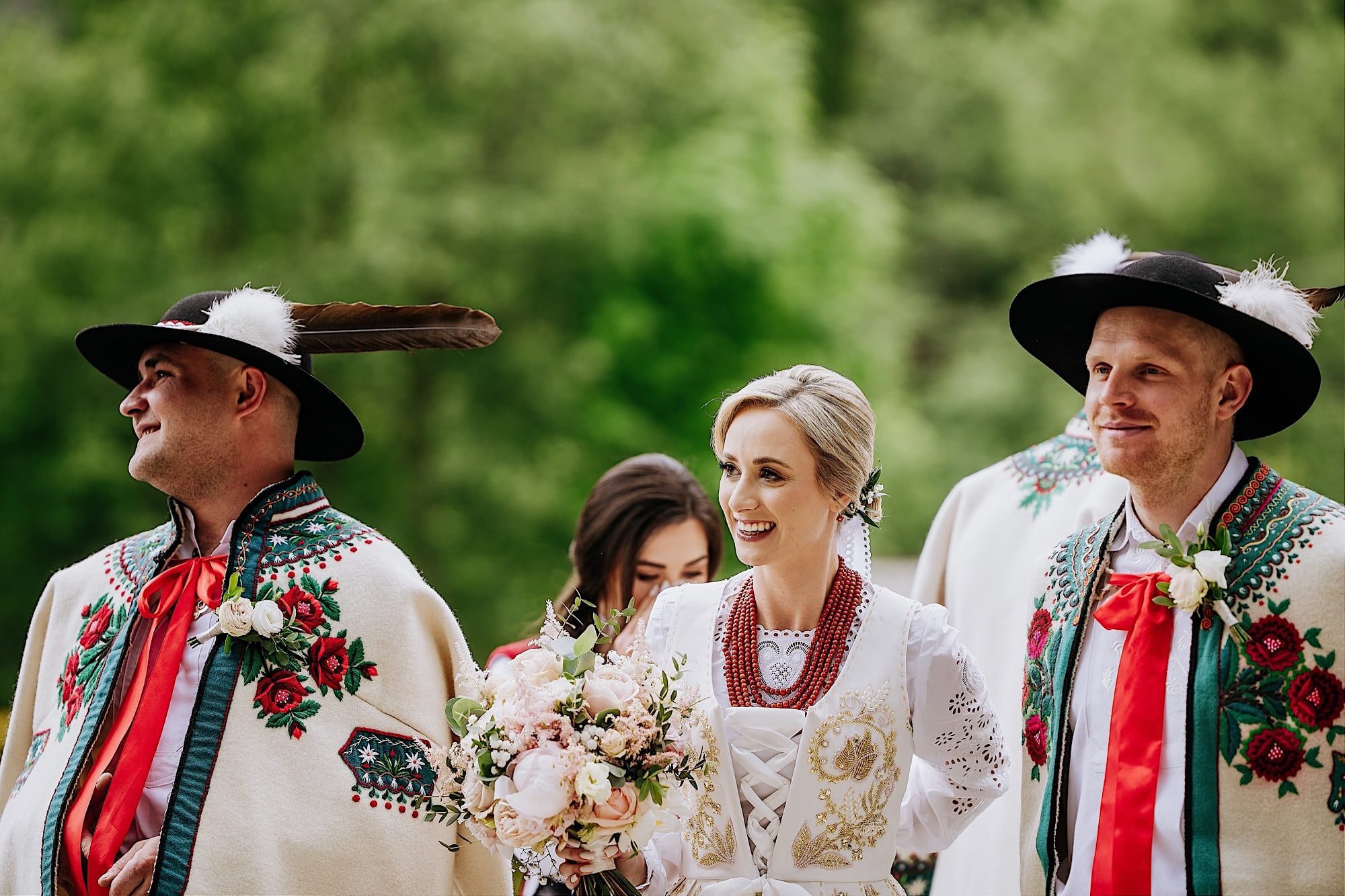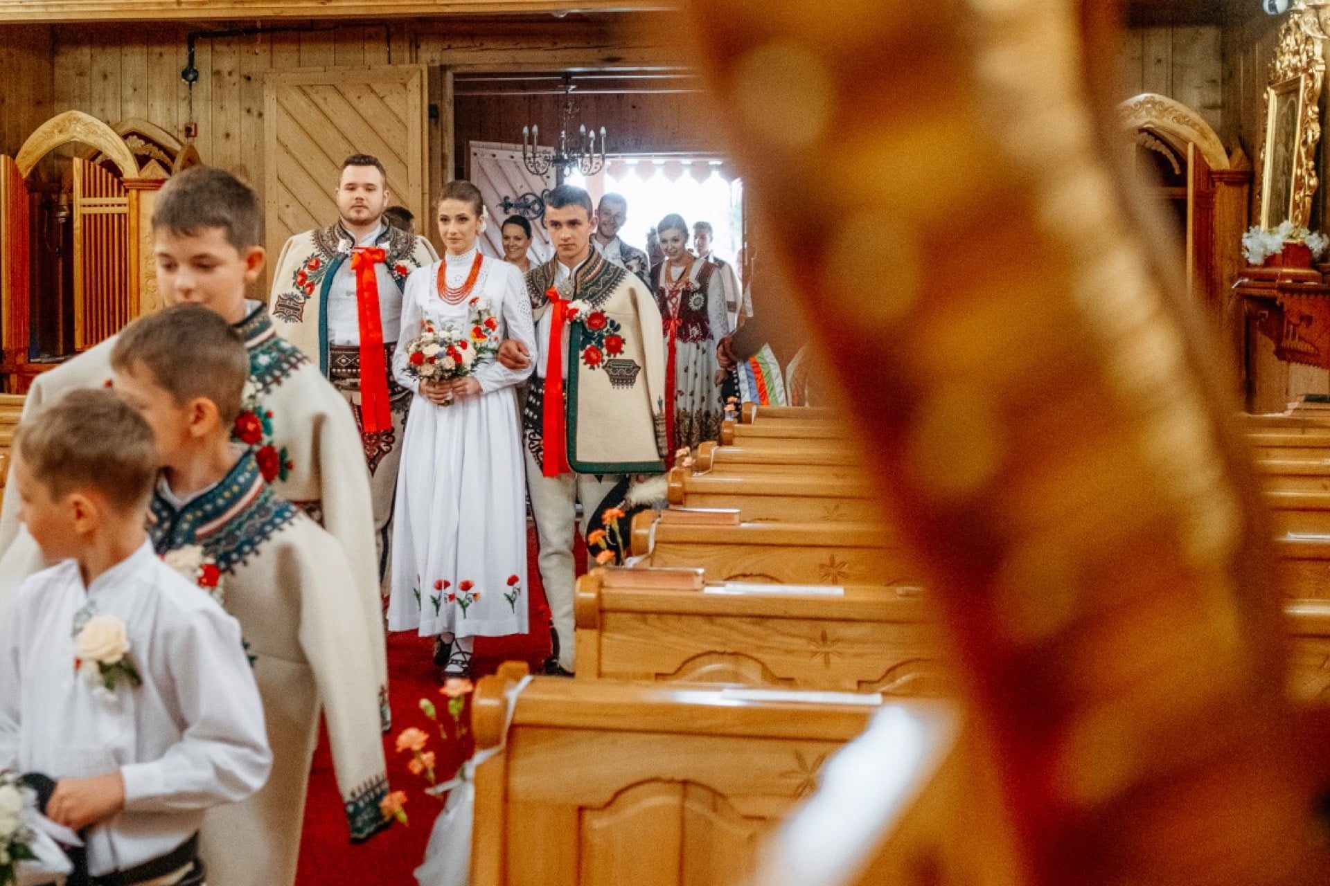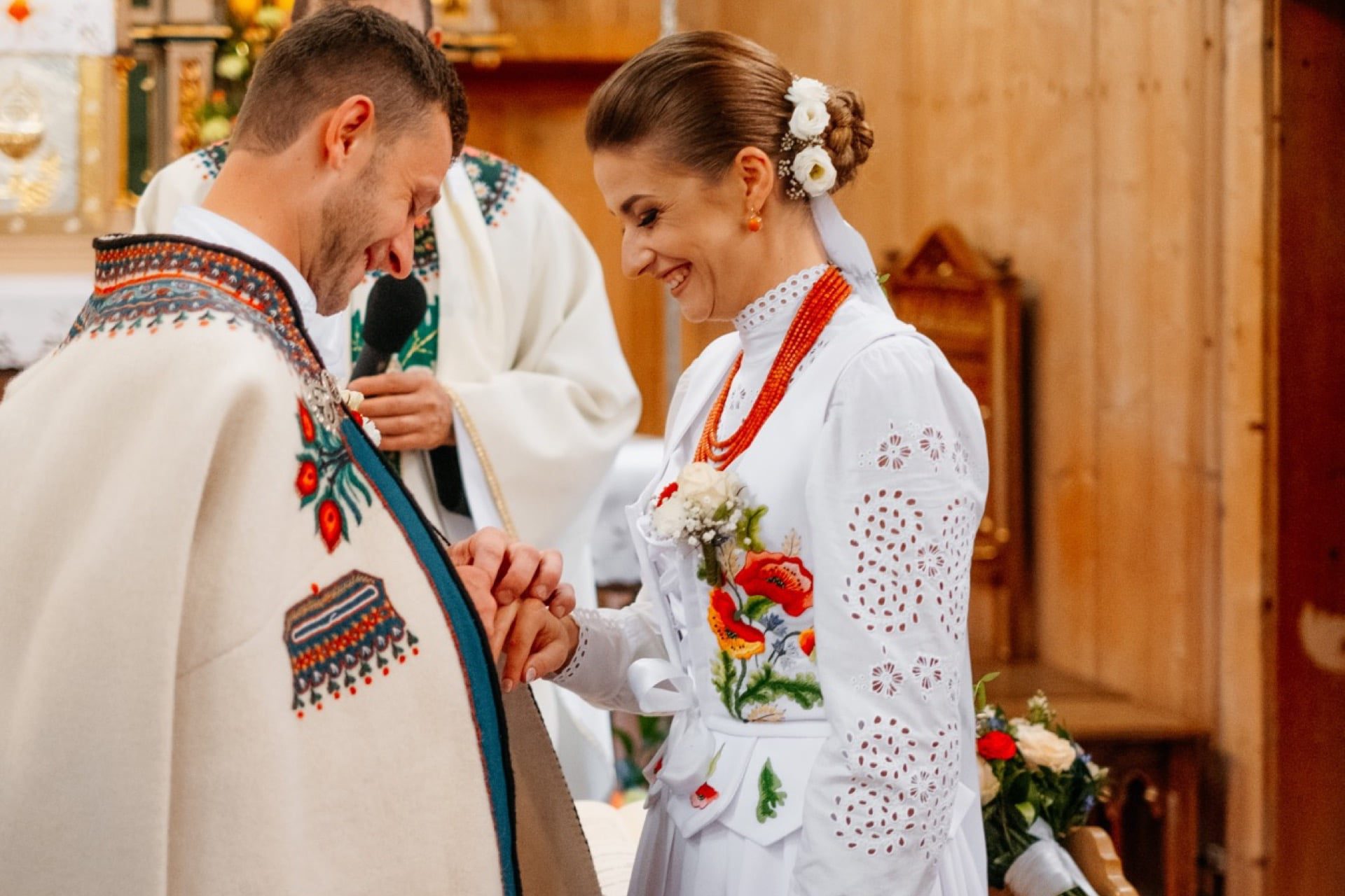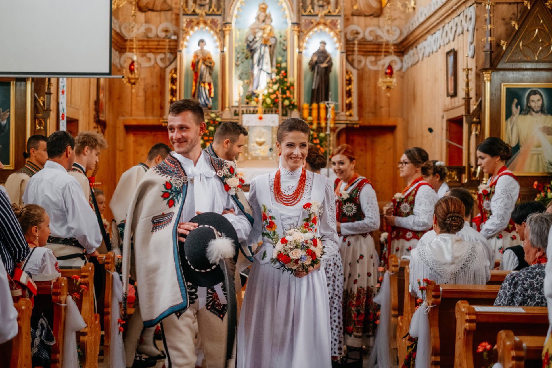 Stroje góralskie to kolejny ważny element tradycji. Panna młoda ubrana jest w białą suknię z haftami, a pan młody w cuchę i portki. Jak pisze **National Geographic**:
