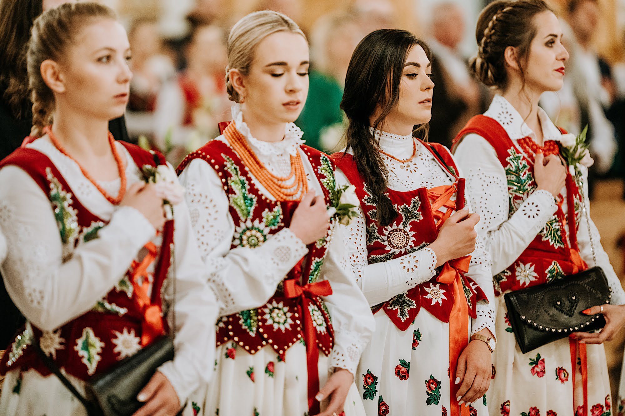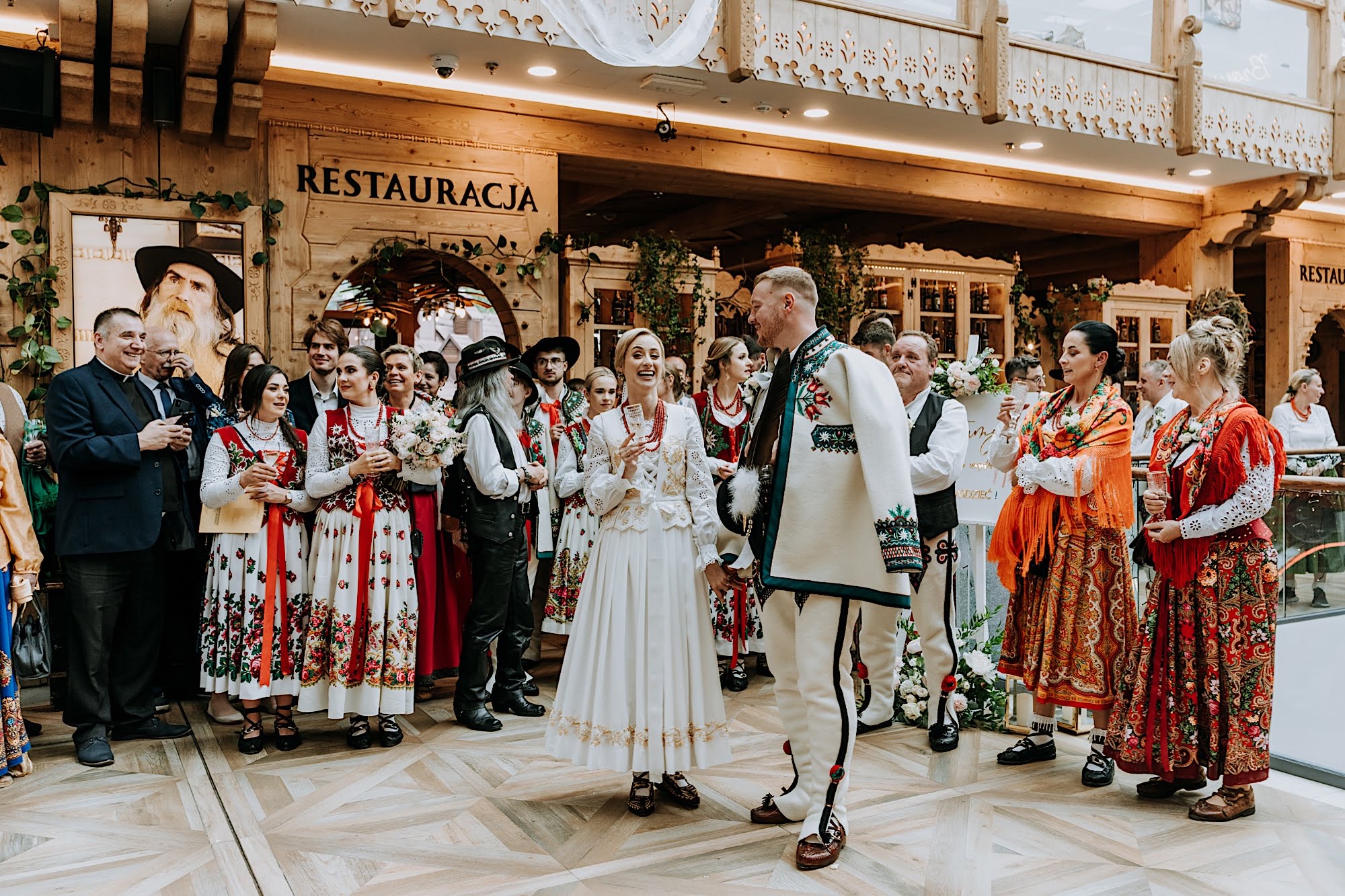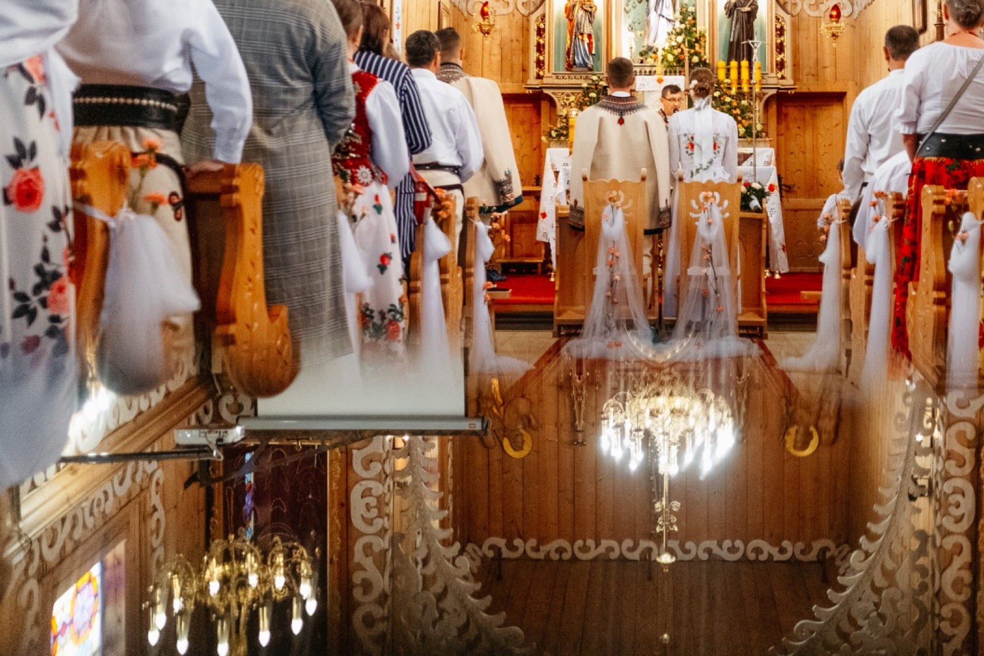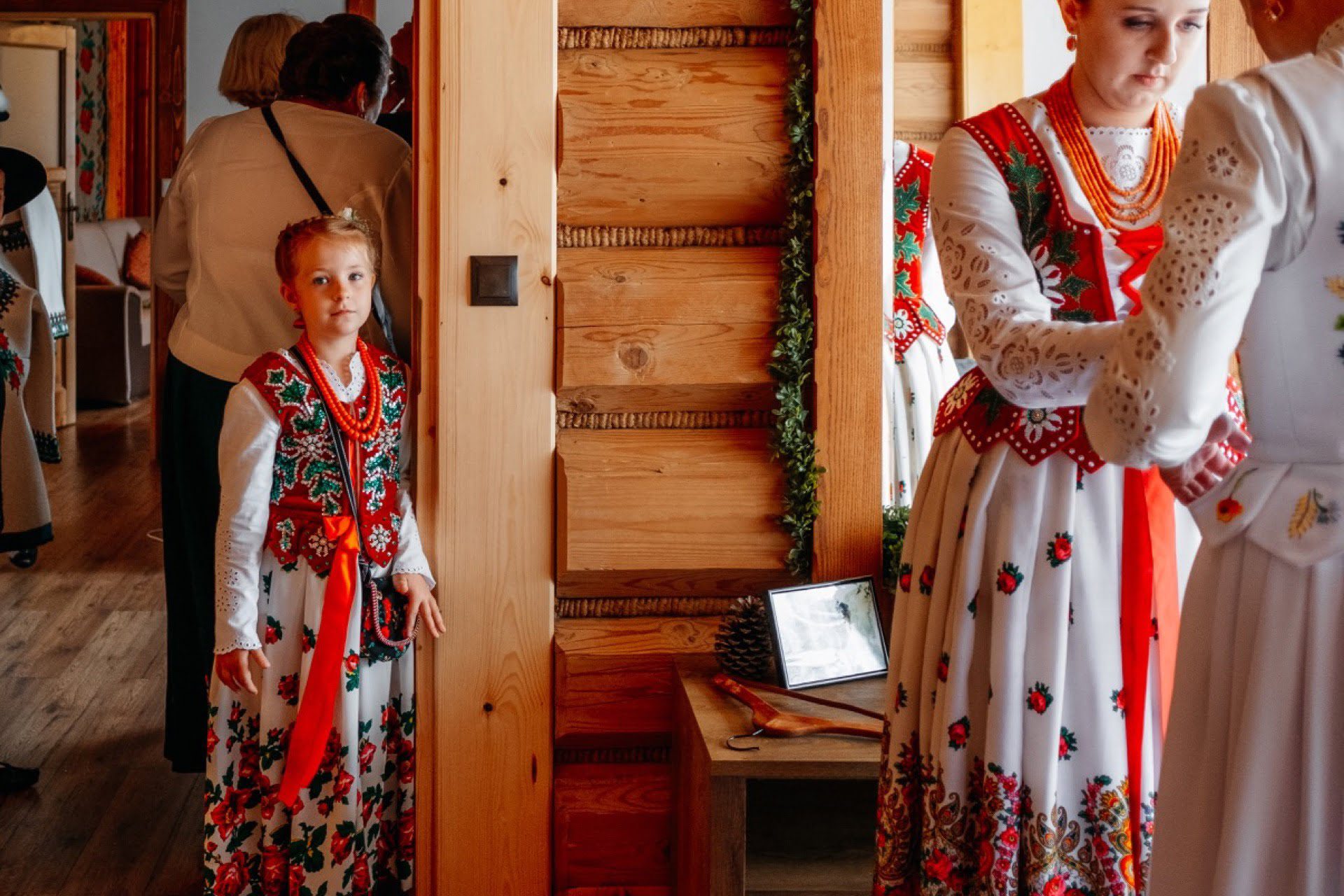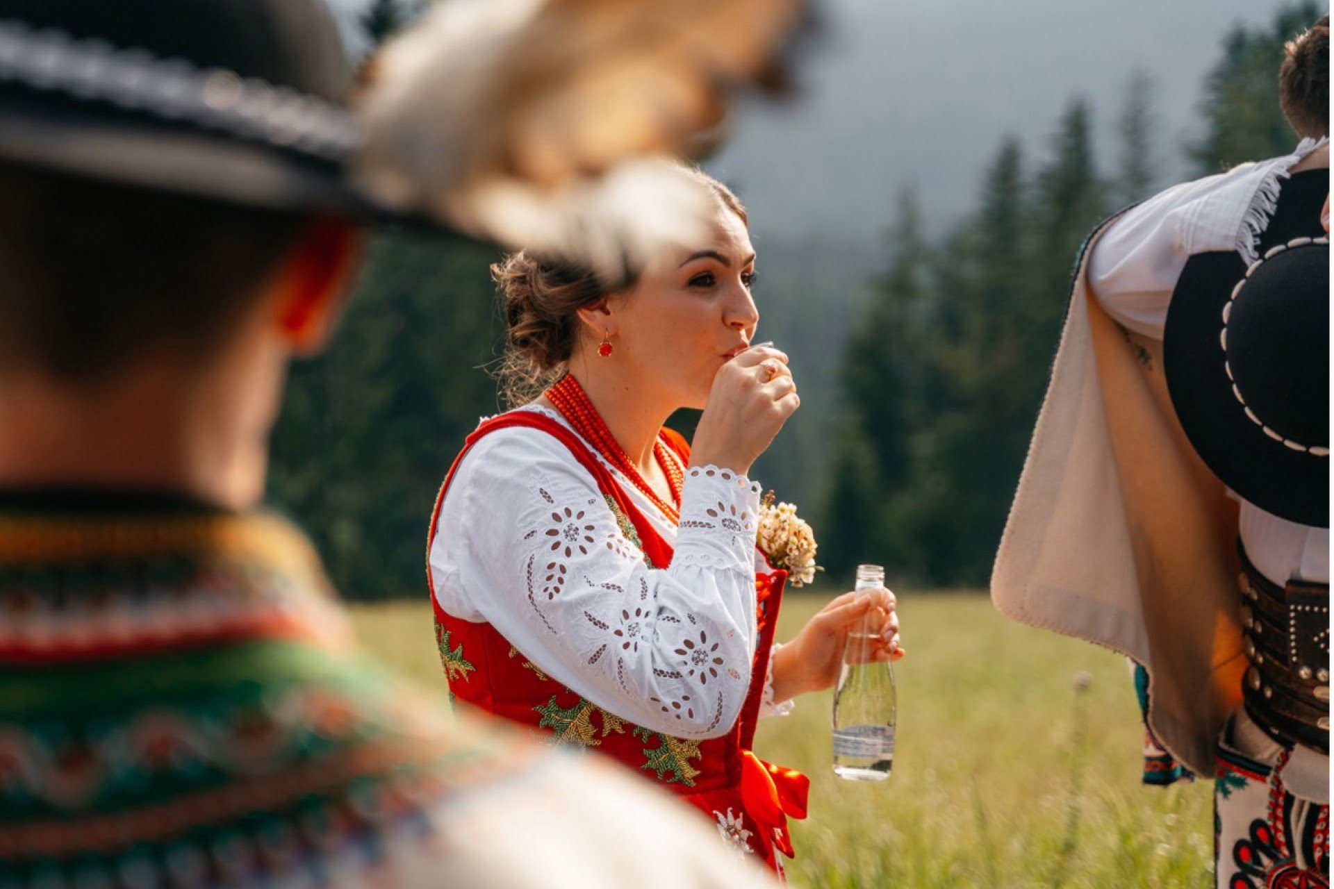 Stroje góralskie to kolejny ważny element tradycji. Panna młoda ubrana jest w białą suknię z haftami, a pan młody w cuchę i portki. Jak pisze **National Geographic**: