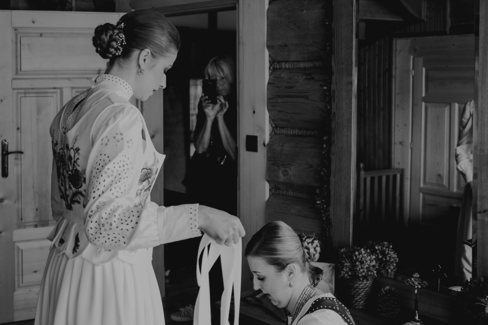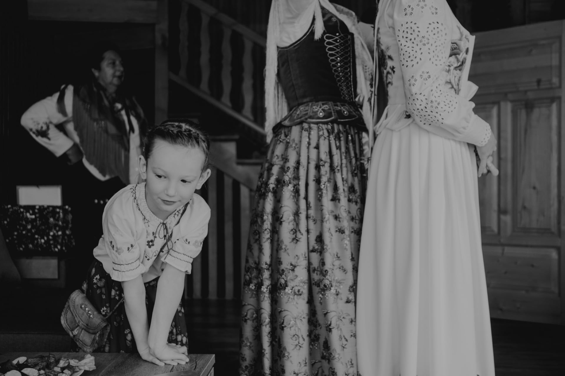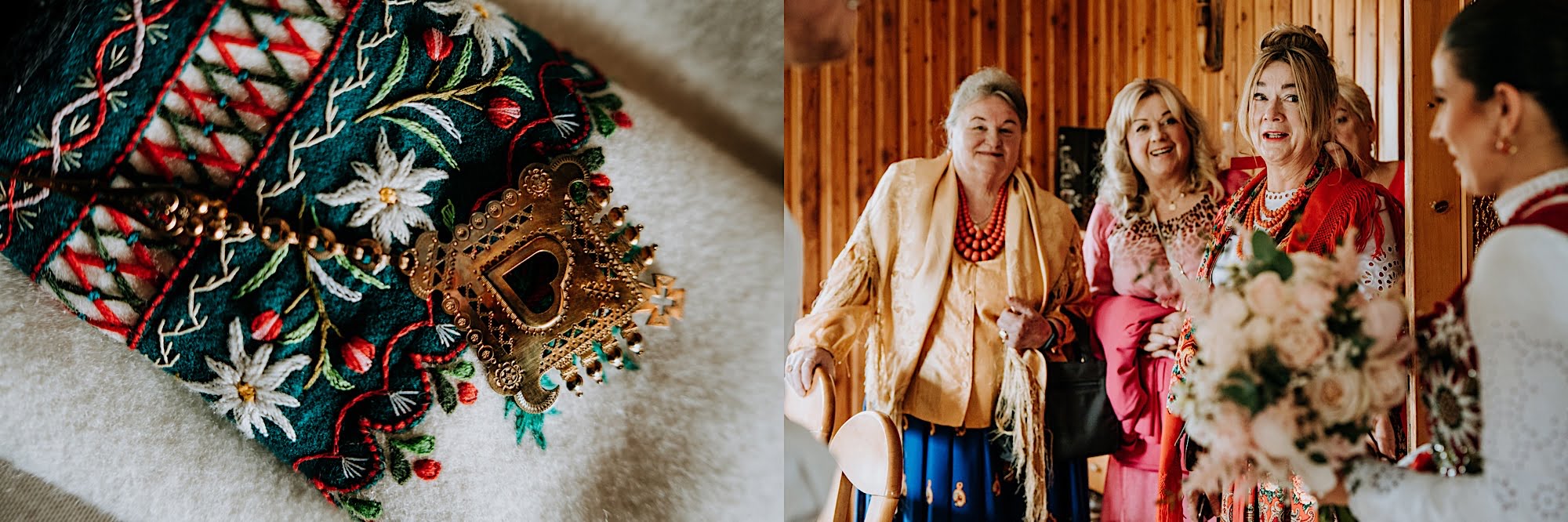 Zanim jednak to nastąpi, towarzyszę w domu rodzinnym panny i pana młodego, co daje mi możliwość uchwycenia wszystkich nieodłącznych emocji obecnych w tak ważnym wydarzeniu oraz drobnych, ale niezwykle istotnych szczegółów i niuansów charakterystycznych dla przedślubnych przygotowań. Mam przy tym okazję podziwiać piękne regionalne i misternie haftowane stroje, które są niepowtarzalne pod każdym względem i w bardzo dużym stopniu stanowią o wyjątkowości uroczystości, jakim jest ślub i wesele Zakopane. Która kobieta nie chciałaby takiej sukni do ślubu?