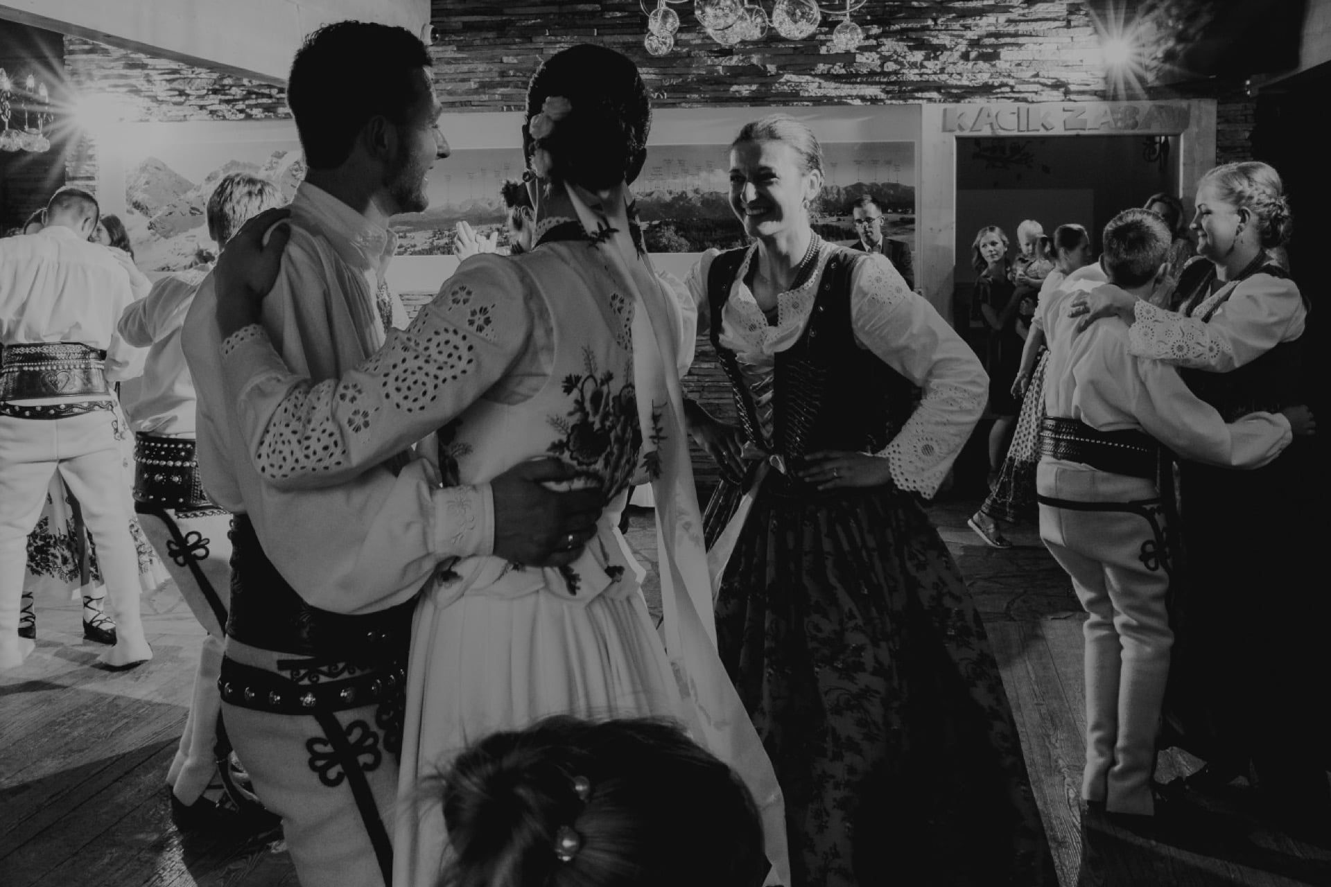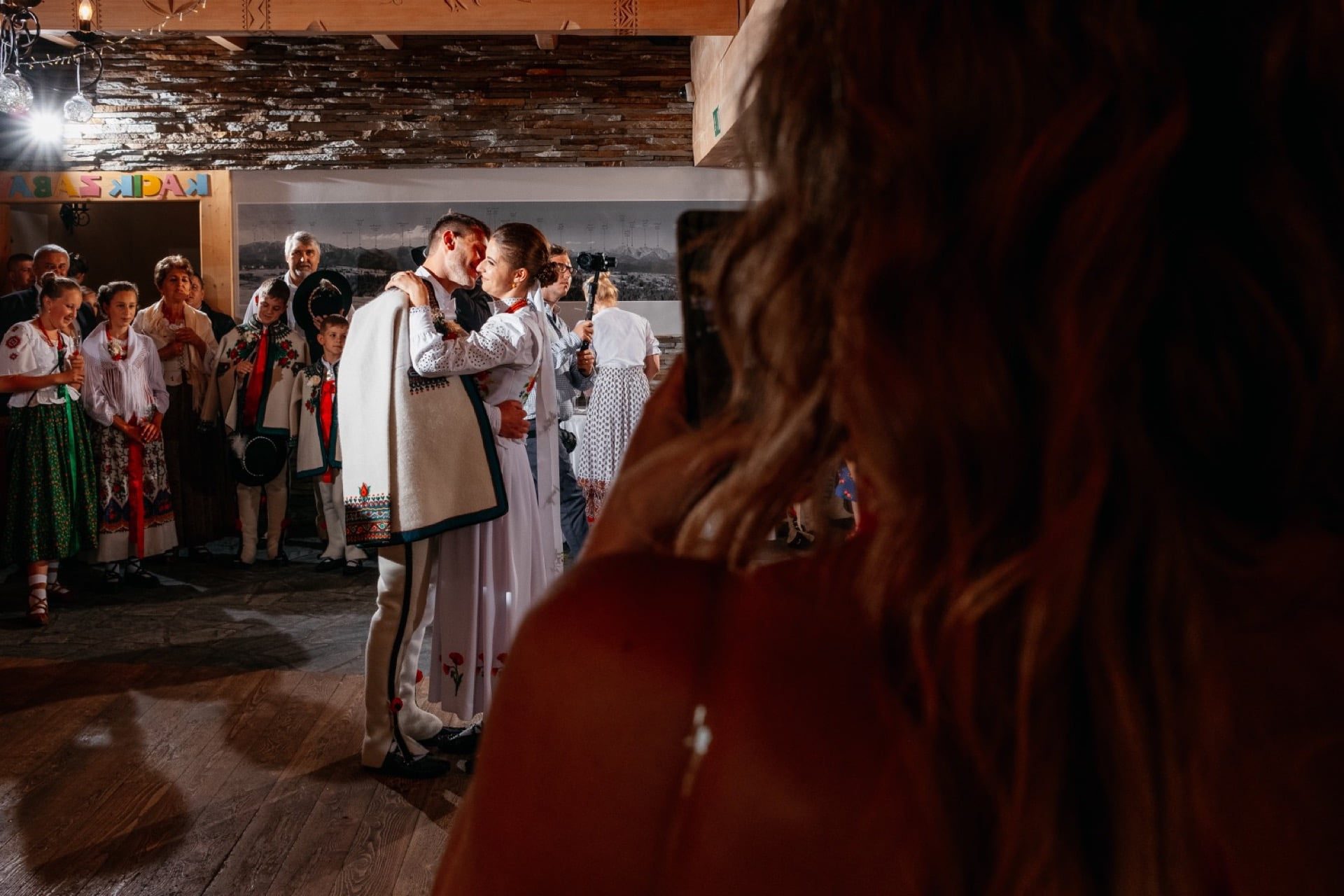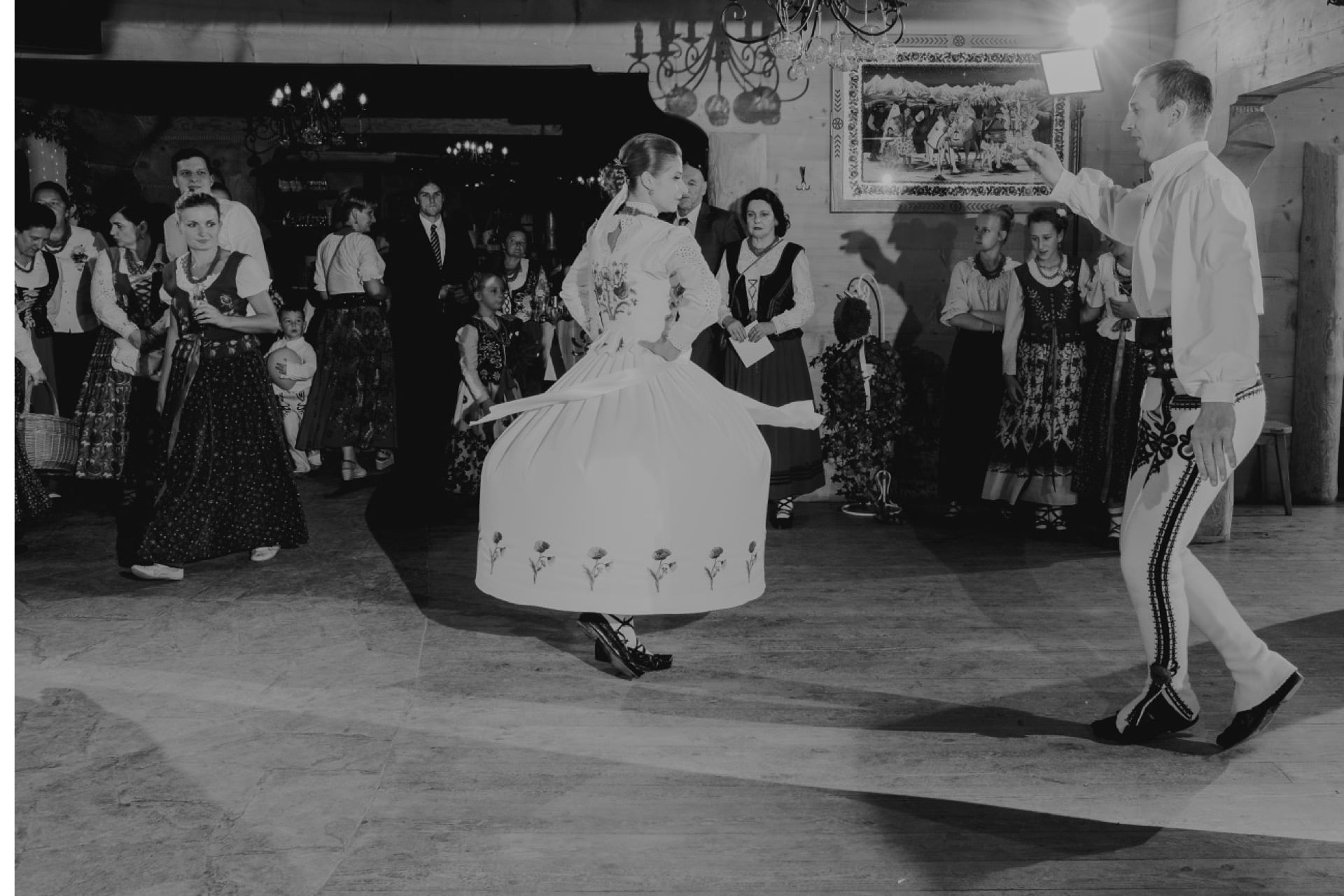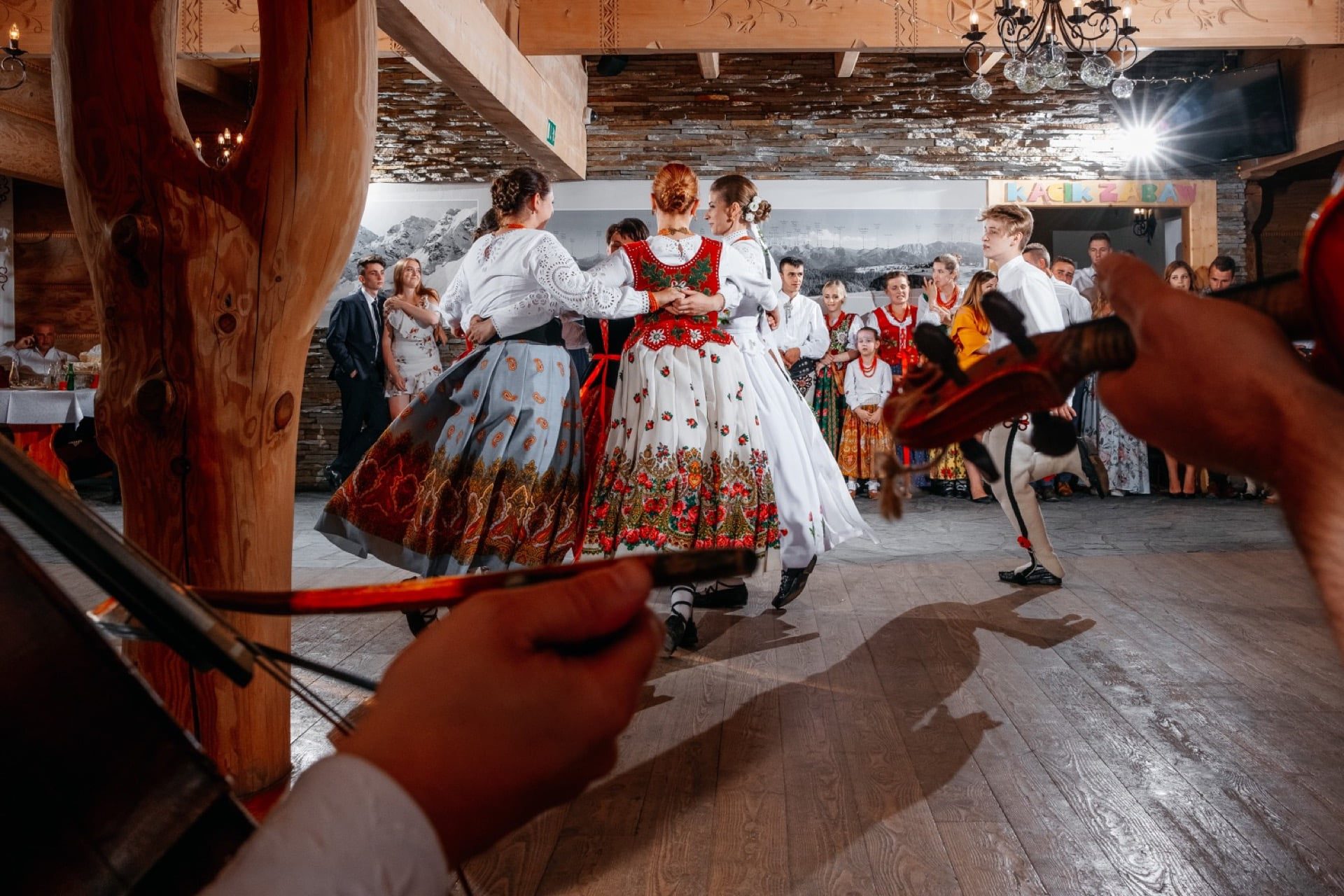 Kluczową rolę w góralskim weselu odgrywają przekazywane z pokolenia na pokolenie obrzędy i przyśpiewki. Trudno sobie wyobrazić, że mogłoby na tej zabawie zabraknąć góralskiej kapeli, która przygrywa na skrzypkach, basach, dudach i piszczałkach, w takim miejscu jak kraina smaku wesele. Ta charakterystyczna muzyka jest więc jednym z kluczowych elementów góralskiego wesela i mogę śmiało powiedzieć, że też gwarancją dobrej zabawy – nikt tak skutecznie nie potrafi zaprosić gości do tańca. Dzięki temu każdy fotograf Zakopane ma świetny materiał na reportaż z hucznej i spontanicznej zabawy na parkiecie i jak wcześniej twarze były poważne, tak teraz główne emocje to radość i szczęście. Takie ujęcia ogląda się po latach najprzyjemniej, a ja zawsze wybieram te najlepsze.