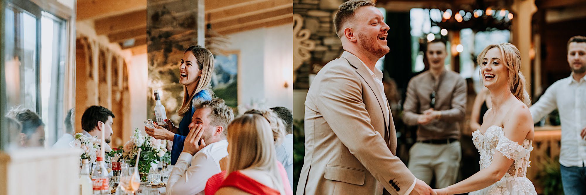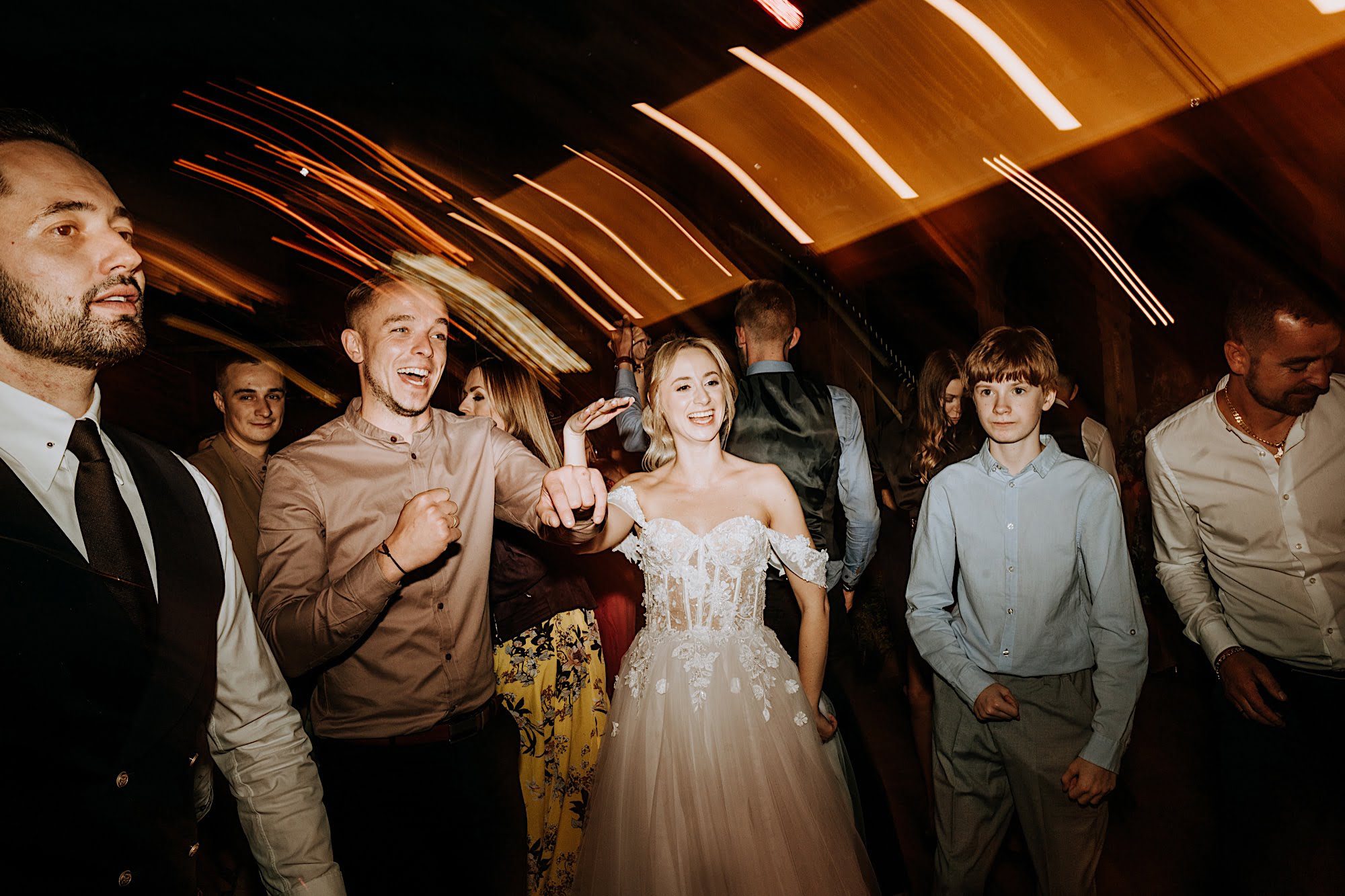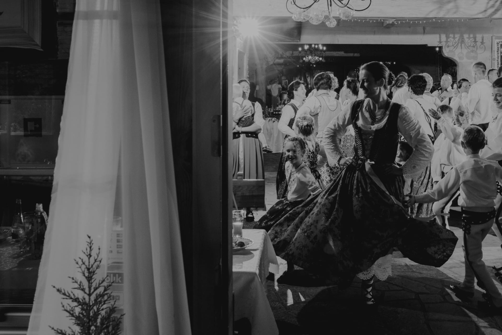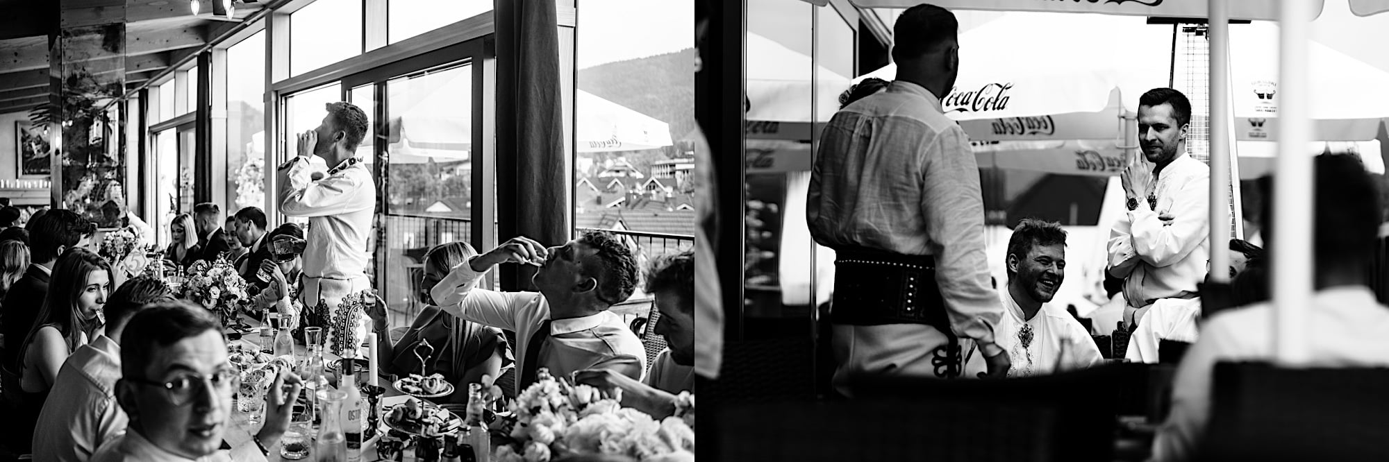 Kluczową rolę w góralskim weselu odgrywają przekazywane z pokolenia na pokolenie obrzędy i przyśpiewki. Trudno sobie wyobrazić, że mogłoby na tej zabawie zabraknąć góralskiej kapeli, która przygrywa na skrzypkach, basach, dudach i piszczałkach, w takim miejscu jak kraina smaku wesele. Ta charakterystyczna muzyka jest więc jednym z kluczowych elementów góralskiego wesela i mogę śmiało powiedzieć, że też gwarancją dobrej zabawy – nikt tak skutecznie nie potrafi zaprosić gości do tańca. Dzięki temu każdy fotograf Zakopane ma świetny materiał na reportaż z hucznej i spontanicznej zabawy na parkiecie i jak wcześniej twarze były poważne, tak teraz główne emocje to radość i szczęście. Takie ujęcia ogląda się po latach najprzyjemniej, a ja zawsze wybieram te najlepsze.