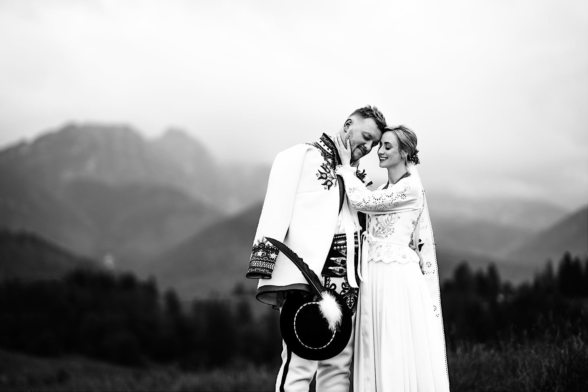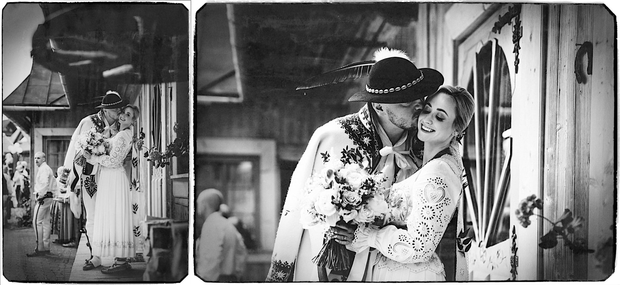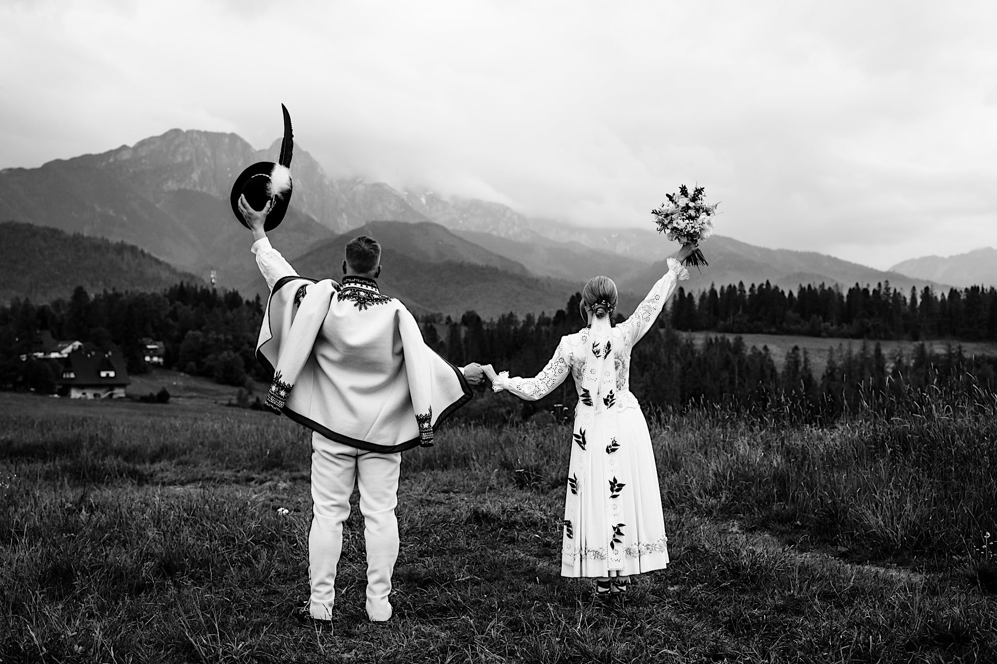 Z kolei na góralskie wesele w Zakopanem pan młody zakłada koszulę z haftem na mankietach i kołnierzyku, spodnie zwane „portkami” z rozcięciem przy kostce oraz cuchy, czyli bogato zdobiony płaszcz/pelerynę. Bardzo często towarzyszy mu też czarny kapelusz z filcu udekorowany długim piórem i szeroki skórzany pas. Podobnie jak u panny młodej, pan młody również nosi kierpce. Każdy z tych detali dokumentuję oczywiście na pamiątkowych zdjęciach ze ślubu.