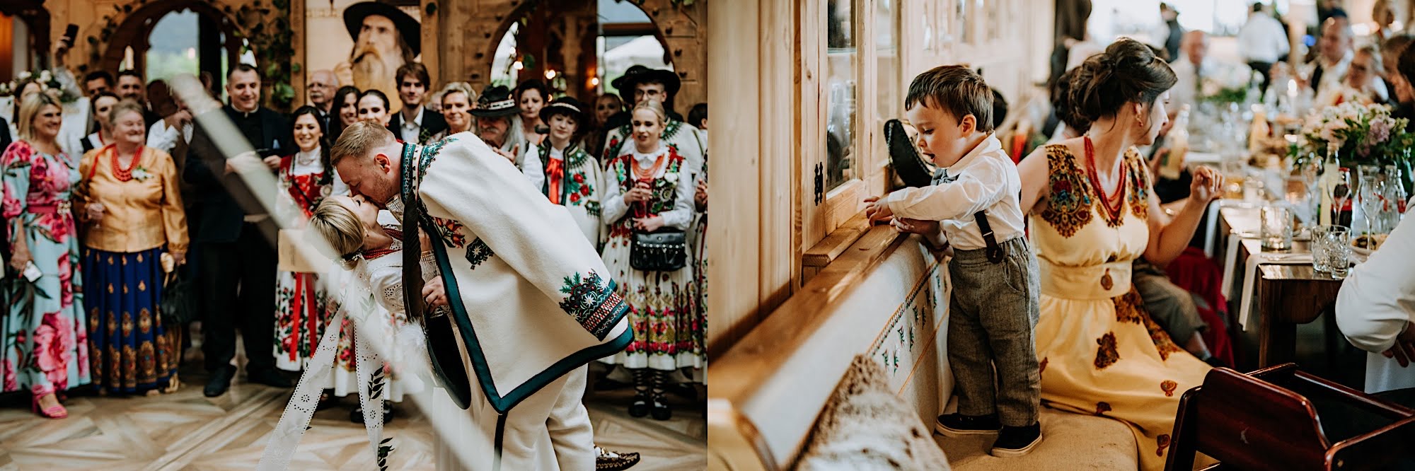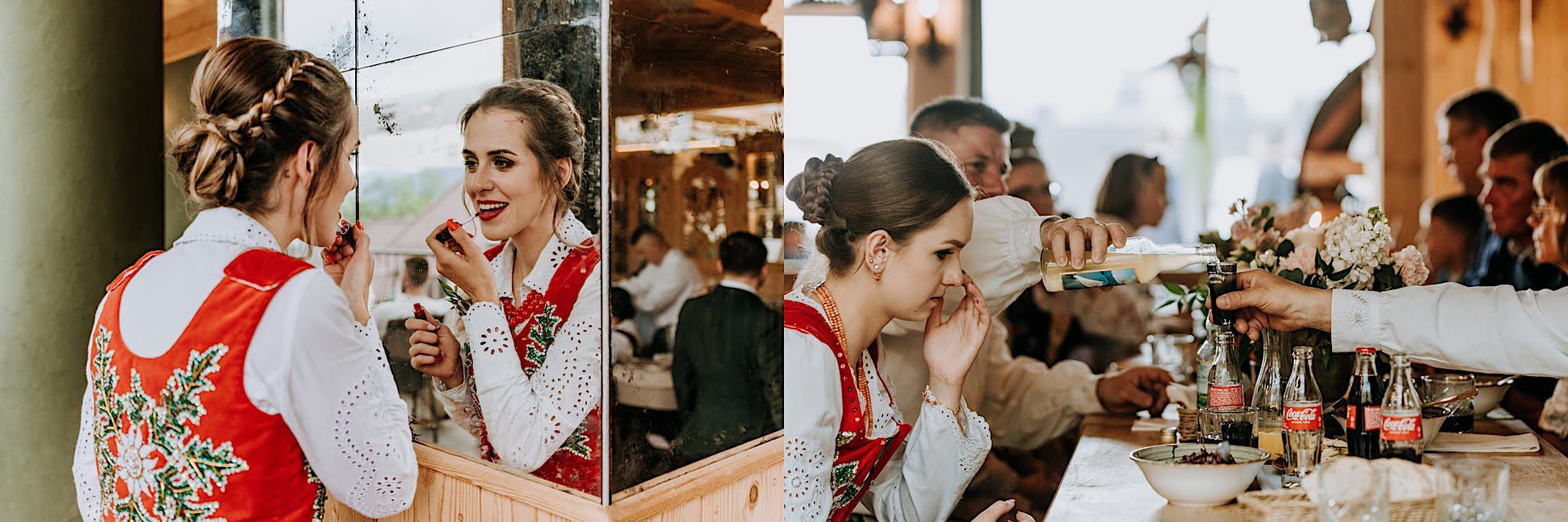 Ślub Zakopane to feeria barw, które królują przede wszystkim na regionalnych strojach pary młodej oraz druhen i drużbów, ale nie tylko. Również sam wystrój kościoła, sali weselnej, a nawet stołów zachwycają kolorową i misternie przygotowaną oprawą, która jest tak silnie zakorzeniona w góralskiej tradycji. Hafty, ręcznie tkane materiały, kłosy i zielone rośliny są obecne także w domach rodzinnych młodej pary, a ja zwracam na to uwagę przede wszystkim na sali weselnej, gdzie odbywa się ostatnia część uroczystości weselnych, czyli po prostu huczna zabawa połączona z regionalnymi i wykwintnymi smakami.