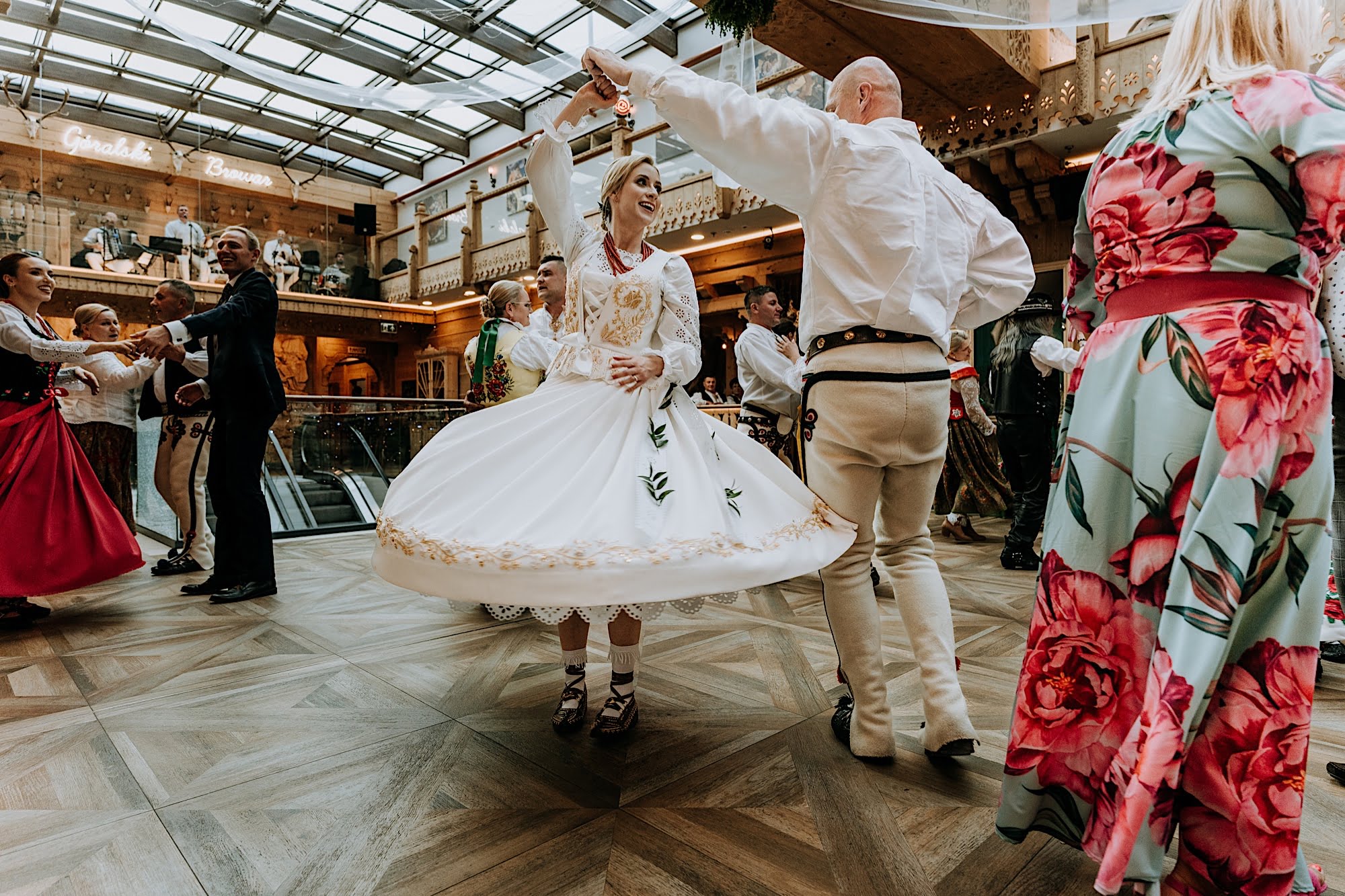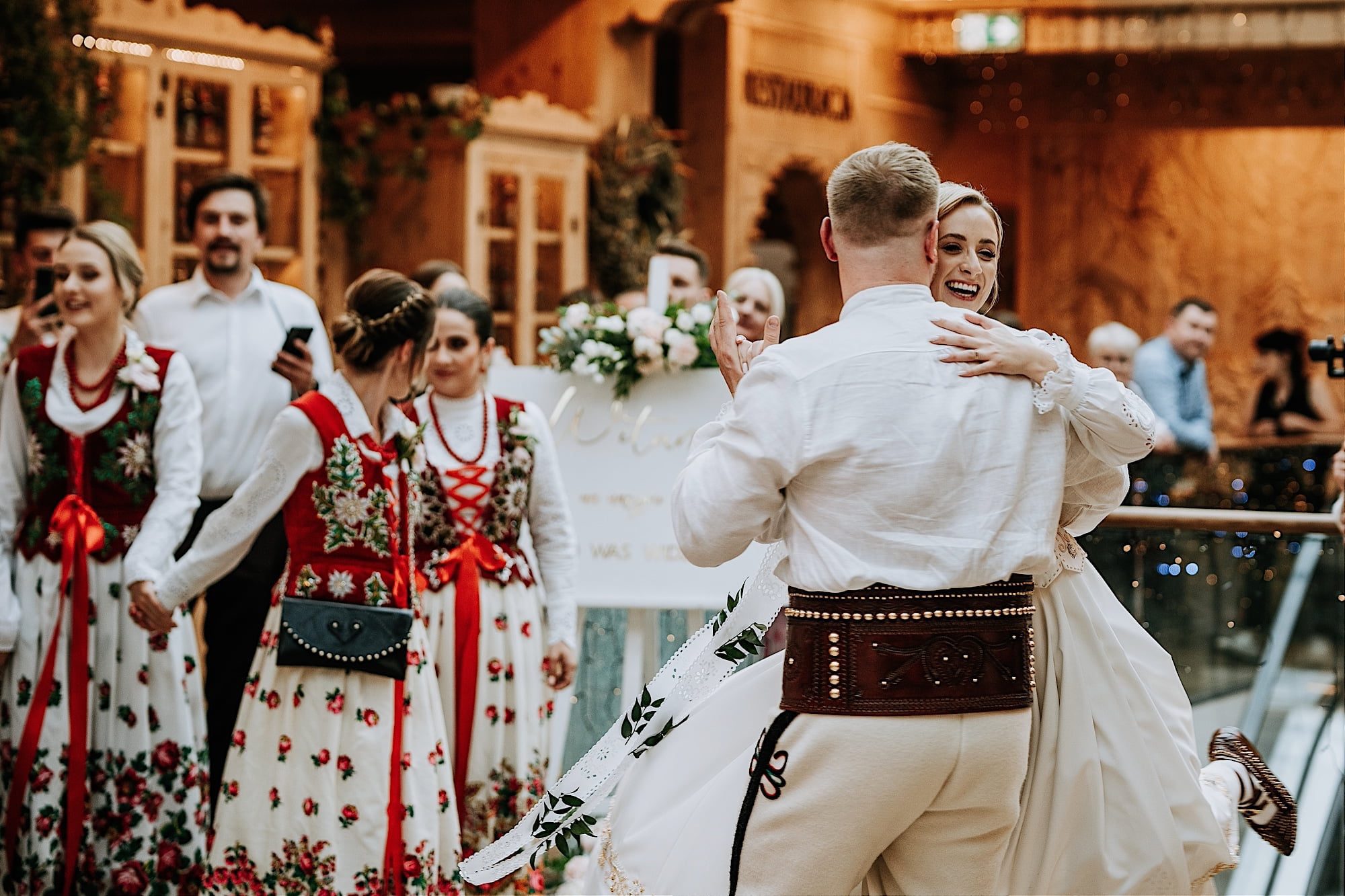 Podczas wesela Pauliny i Mateusza mieliśmy okazję dokumentować tradycyjne tańce góralskie, które rozgrzały do czerwoności nie tylko parkiet, ale i serca gości. To właśnie te chwile – pełne radości, śmiechu i emocji – sprawiają, że góralskie wesele w Sali Parzenica jest tak wyjątkowe.