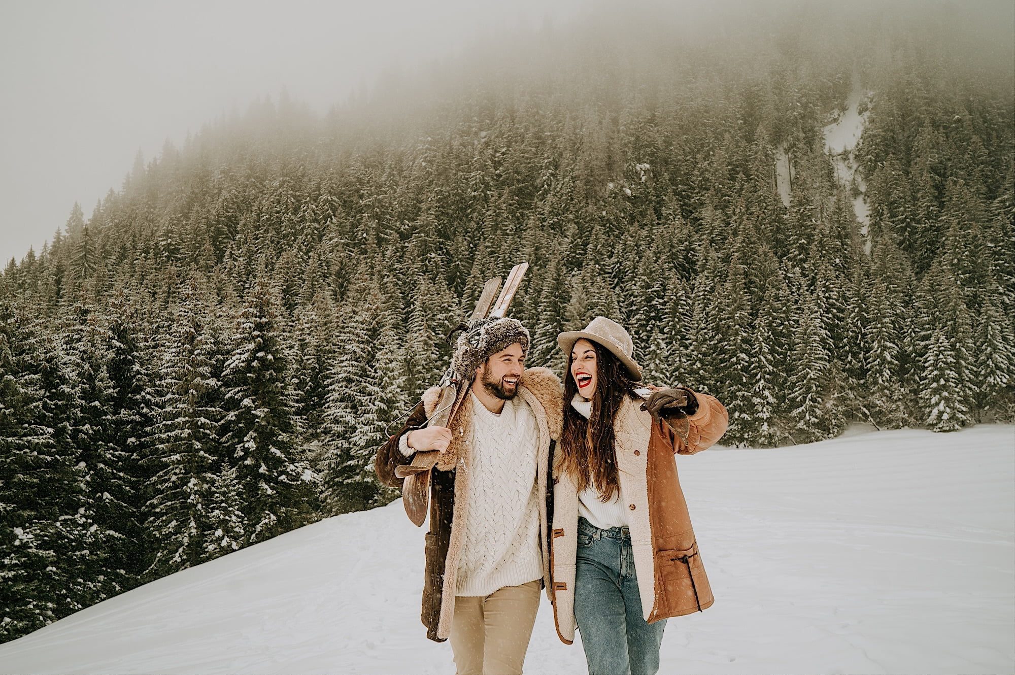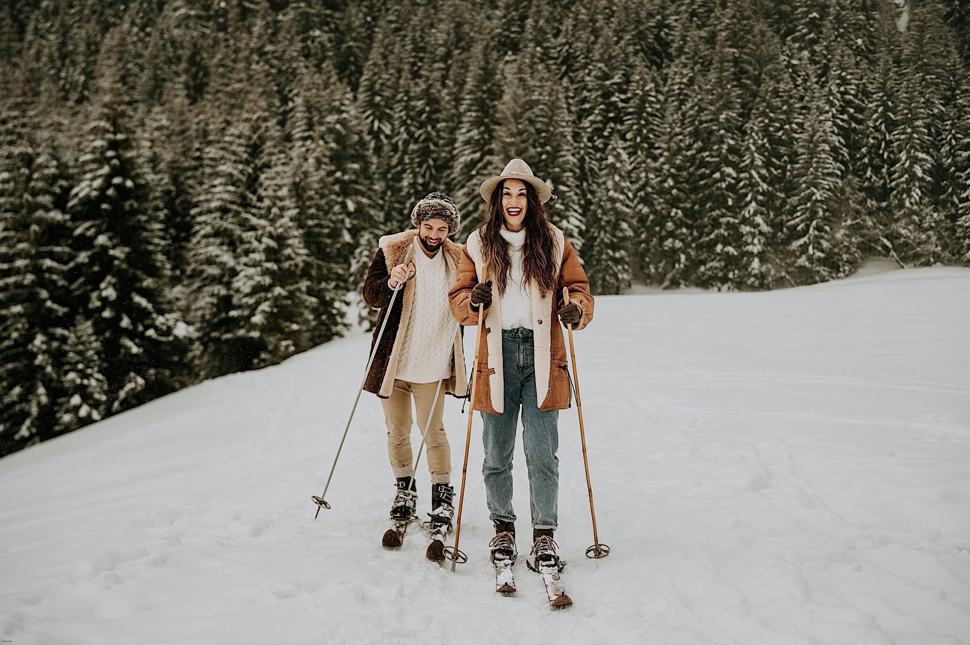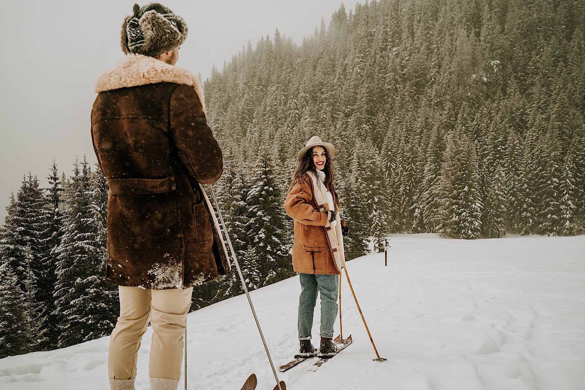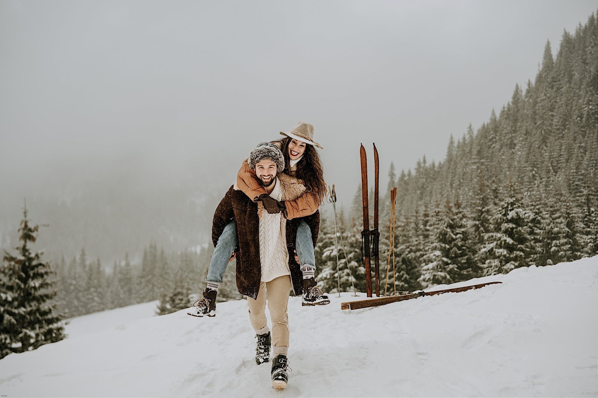 Wybierzcie strój, który nie tylko wygląda świetnie, ale także chroni przed zimnem. Styl casual czy retro, a zwłaszcza strój górski, to doskonałe wybory. A jeśli planujecie dodatkową zabawę, towarzyszące sanie dodadzą sesji dodatkowego uroku.
