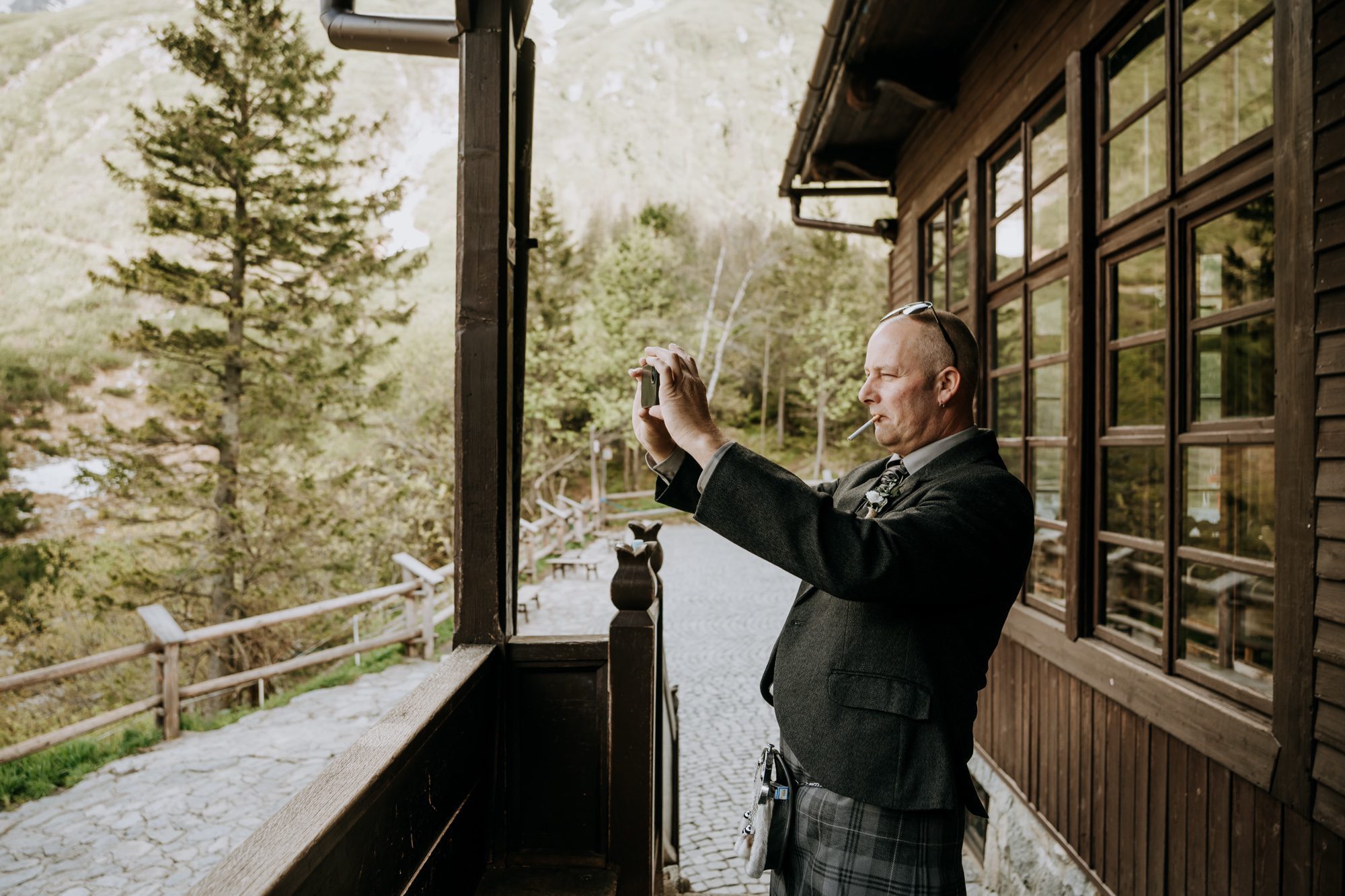 Po ceremonii przyszedł czas na **sesję ślubną nad Morskie Oko**, która stała się prawdziwym ukoronowaniem tego wyjątkowego dnia. Para młoda, wciąż w **tradycyjnych szkockich strojach**, prezentowała się niesamowicie na tle tatrzańskiego krajobrazu. Kluczem były naturalne, dynamiczne ujęcia:
