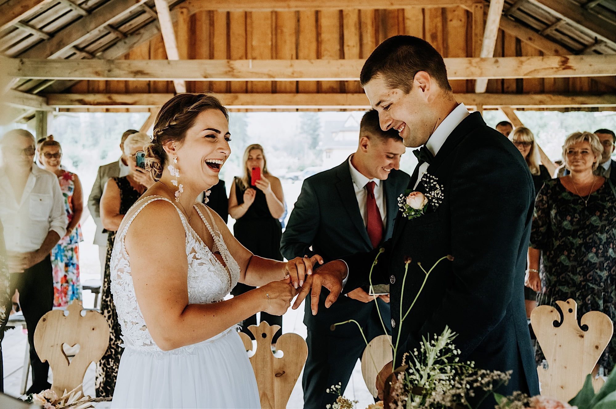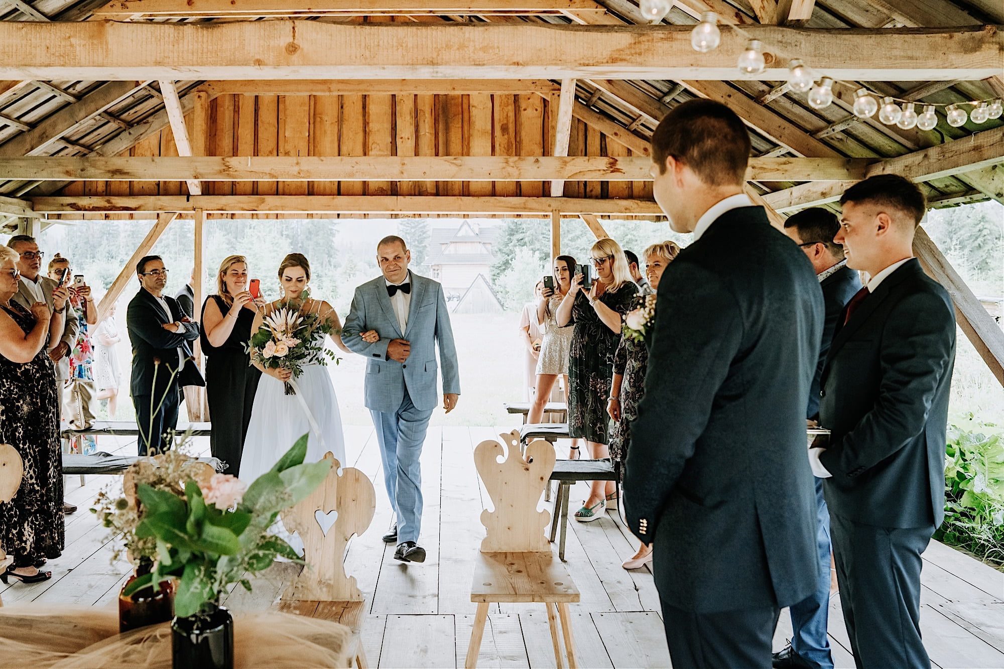 - Altana Plenerowa dla Wygody Nowożeńców i Gości: Altana w stylu góralskim to doskonałe miejsce na przeprowadzenie ceremonii ślubnej. Bez względu na warunki atmosferyczne, altana stanowi doskonałe zadaszenie, chroniąc zarówno nowożeńców, jak i ich gości przed słońcem czy deszczem. To nie tylko praktyczne rozwiązanie, ale także dodatkowy element klimatu góralskiego.Ślub Witów.